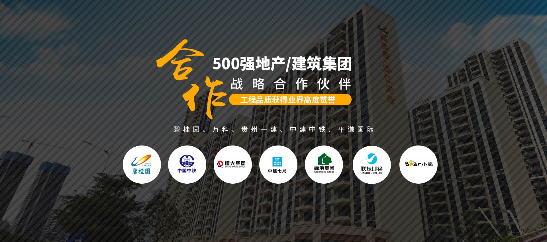 500強指定合作:與“碧桂園、萬科、貴州一建、中建中鐵、平謙國際、恒大、雅居樂”等地產(chǎn)/建筑集團建立長期的戰(zhàn)略合作關(guān)系。